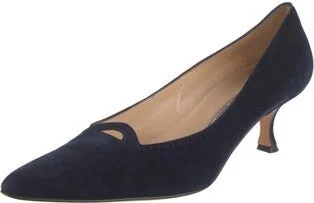 Manolo Blahnik Suede Pumps Blue Semi-Pointed Toes Fit: This style typically runs narrow and a half size small. Read more