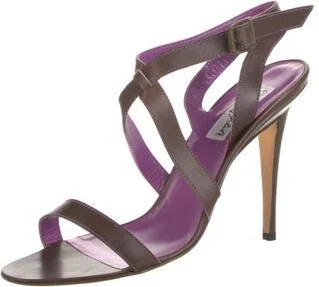 Manolo Blahnik Leather Slingback Sandals Brown Straps & Buckle Closure at Ankles Includes Box Fit: This style typically runs narrow and a half size small. Unfortunately, due to restrictions, this item Read more