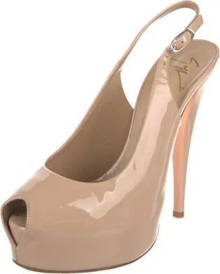 Giuseppe Zanotti Patent Leather Slingback Pumps Neutrals Peep-Toes Platform Straps Fit: This style typically runs a half size small.