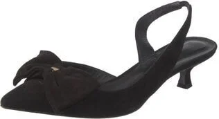 Salvatore Ferragamo Suede Slingback Pumps Black Semi-Pointed Toes with Bow Accents Elasticized Straps Fit: This style typically runs a half size small.