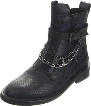 Zadig & Voltaire Leather Ankle Combat Boots Black Round-Toes Wrap-Around Straps & Exposed Zip Closure at Sides Includes Box Unfortunately, due to restrictions, this item may not be eligible for shippi Read more