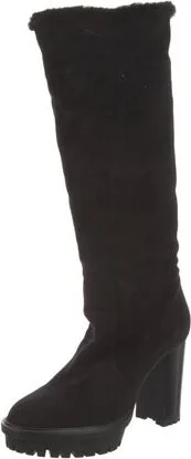 Gianvito Rossi Suede Knee-High Boots Black Semi-Pointed Toes Concealed Zip Closure at Sides Designer Fit: Boots by Gianvito Rossi typically run a half size small. Read more