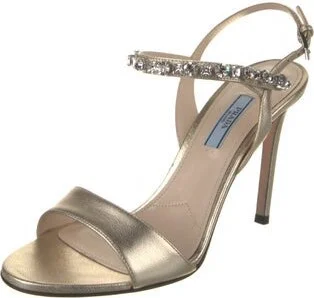 Prada Leather Sandals Gold Crystal Embellishments Multistrap Includes Box & Dust Bag Designer Fit: Sandals by Prada typically run a half size small. Unfortunately, due to restrictions, this item may not be eligible for shipping in all areas.