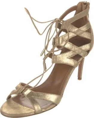 Aquazzura Suede Gladiator Sandals Gold & Metallic Multistrap & Lace-Up Closure at Uppers