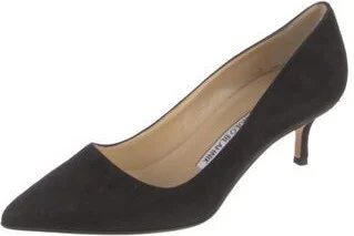 Manolo Blahnik Suede Pumps Black Leather Trim Pointed-Toes with Leather Trim Embellishment Fit: This style typically runs narrow and a half size small. Read more