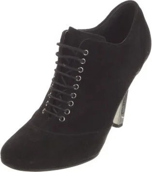 Chanel Suede Pumps From the 2015 Collection by Karl Lagerfeld Black Interlocking CC Logo Round-Toes Lace-Up Closure at Uppers Includes Dust Bag Designer Fit: This style typically runs narrow and a hal Read more