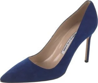 Manolo Blahnik Suede Pumps Blue Pointed-Toes Includes Box & Dust Bag Fit: This style typically runs narrow and a half size small. Read more