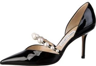 Jimmy Choo Patent Leather D'Orsay Pumps Black Pointed-Toes with Beaded Accents Includes Box & Dust Bag Fit: This style typically runs a half size small. Read more