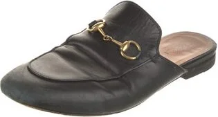 Gucci Leather Mules Black Semi-Pointed Toes Designer Fit: Flats by Gucci typically run a half size small. Unfortunately, due to restrictions, this item may not be eligible for shipping in all areas.
