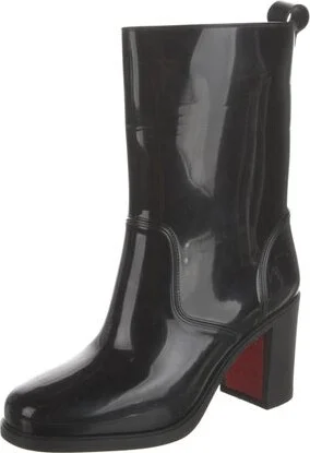 Christian Louboutin Rubber Mid-Calf Rain Boots Black Leather Trim Square-Toes with Studded Accents Platform Designer Fit: This style typically runs a full size small. Read more