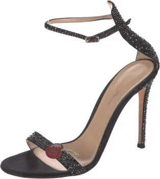 Gianvito Rossi Satin Sandals Black Crystal Embellishments Wrap-Around Straps & Buckle Closure at Ankles Read more