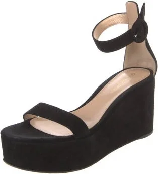 Gianvito Rossi Suede Sandals Black Platform Straps & Buckle Closure at Ankles Read more