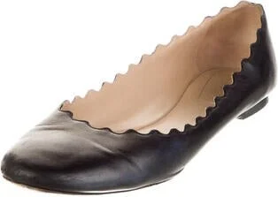 Chloé Leather Ballet Flats Black Round-Toes with Scalloped Accent Designer Fit: Flats by Chloé typically run a half size small. Unfortunately, due to restrictions, this item may not be eligible for shipping in all areas.