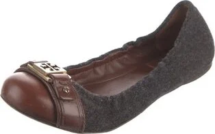 Tory Burch Ballet Flats Grey Leather Trim Round-Toes Designer Fit: This designer typically runs true to size. Read more