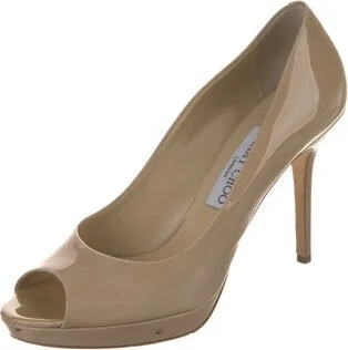 Jimmy Choo Patent Leather Pumps Neutrals Peep-Toes Platform Includes Box Fit: This style typically runs a half size small. Read more