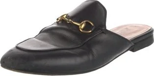 Gucci Leather Mules Black Horsebit Accent Semi-Pointed Toes Designer Fit: Flats by Gucci typically run a half size small. Unfortunately, due to restrictions, this item may not be eligible for shipping Read more