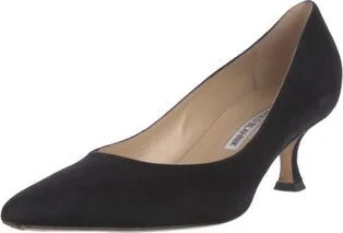 Manolo Blahnik Suede Pumps Black Semi-Pointed Toes Fit: This style typically runs narrow and a half size small. Read more