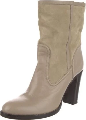 Chloé Leather Mid-Calf Boots Neutrals Suede Trim Round-Toes Fit: This style typically runs a half size small. Unfortunately, due to restrictions, this item may not be eligible for shipping in all are Read more