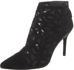 Stuart Weitzman Suede Ankle Lace-Up Boots Black Pointed-Toes with Mesh Accents Designer Fit: This designer typically runs true to size.