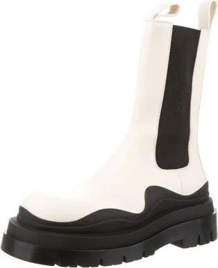 Bottega Veneta Leather Mid-Calf Chelsea Boots Neutrals Colorblock Pattern Round-Toes Unfortunately, due to restrictions, this item may not be eligible for shipping in all areas. Read more