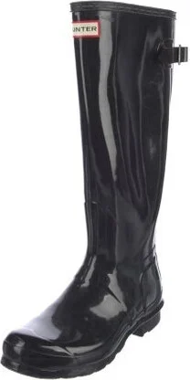 Hunter Rubber Knee-High Rain Boots Black Round-Toes Buckle Closure at Sides Read more