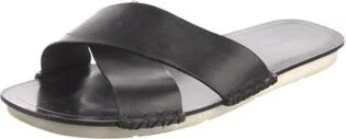Vince Leather Slides Black Crossover Straps Unfortunately, due to restrictions, this item may not be eligible for shipping in all areas.