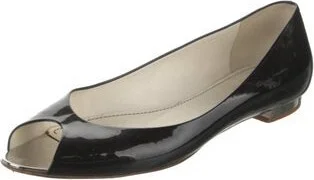 Chanel Patent Leather Flats By Karl Lagerfeld Black Interlocking CC Logo Semi-Pointed Toes Designer Fit: This style typically runs narrow and a half size to a full size small. Read more