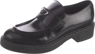 Prada Leather Loafers Black Round-Toes Designer Fit: Flats by Prada typically run a half size small. Unfortunately, due to restrictions, this item may not be eligible for shipping in all areas. Read more