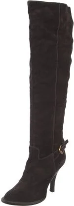 Prada Leather Over-The-Knee Boots Brown Semi-Pointed Toes Wrap-Around Straps Fit: This style typically runs a half size small. Unfortunately, due to restrictions, this item may not be eligible for shipping in all areas.