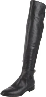 Tory Burch Leather Over-The-Knee Boots Black Round-Toes Concealed Zip Closure at Sides Designer Fit: This designer typically runs true to size. Unfortunately, due to restrictions, this item may not be Read more