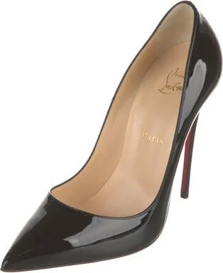 Christian Louboutin Patent Leather Pumps Black Leather Trim Pointed-Toes Includes Box & Dust Bag Designer Fit: This style typically runs a half size to a full size small.