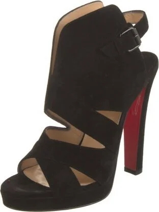 Christian Louboutin Suede Slingback Sandals Black Platform Buckle Closure at Ankles Includes Box & Dust Bag Designer Fit: This style typically runs a half size to a full size small. Read more