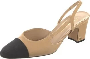 Chanel Goat Leather Slingback Pumps Neutrals Interlocking CC Logo Semi-Pointed Toes with Grosgrain Trim Elasticized Straps Designer Fit: This style typically runs narrow and a half size small. Read more