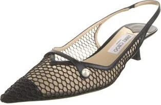 Jimmy Choo Mesh Slingback Pumps Black Leather Trim Leather & Beaded Accents Pointed-Toes Fit: This style typically runs a half size small.