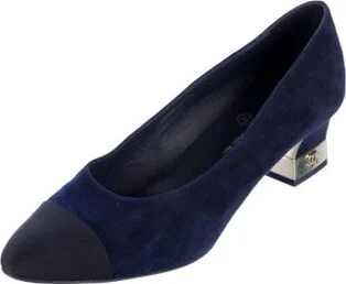 Chanel Suede Pumps From the 2020 Collection by Virginie Viard Blue Interlocking CC Logo Round-Toes Includes Box & Dust Bag Designer Fit: This style typically runs narrow and a half size small. Read more