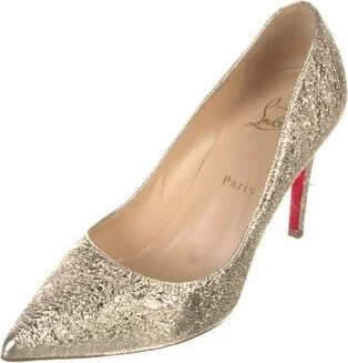 Christian Louboutin Leather Pumps Gold & Metallic Pointed-Toes Includes Box & Dust Bag Designer Fit: This style typically runs a half size to a full size small. Unfortunately, due to restrictions, this item may not be eligible for shipping in all areas.