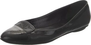 Chanel Vintage Flats From the 2006 Collection by Karl Lagerfeld Black Leather Interlocking CC Logo Patent Leather Trim Semi-Pointed Toes Designer Fit: This style typically runs narrow and a half size Read more