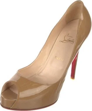 Christian Louboutin Patent Leather Pumps Neutrals Peep-Toes Platform Designer Fit: This style typically runs a half size to a full size small.