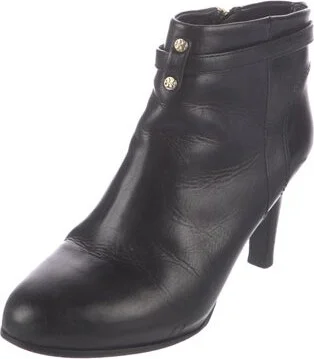 Tory Burch Leather Ankle Boots Black Round-Toes Platform Exposed Zip Closure at Sides Designer Fit: This designer typically runs true to size. Unfortunately, due to restrictions, this item may not be Read more