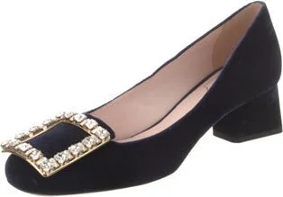 Roger Vivier Velvet Pumps Black Square-Toes with Crystal Embellishments Designer Fit: Pumps by Roger Vivier typically run a half size small. Read more