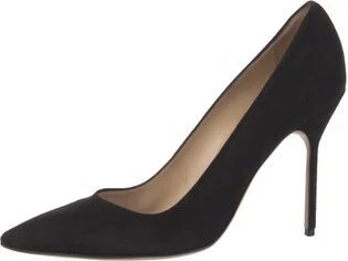 Manolo Blahnik Suede Pumps Blue Semi-Pointed Toes Fit: This style typically runs narrow and a half size small. Read more