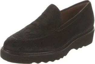 Aquatalia Suede Loafers Black Semi-Pointed Toes Platform