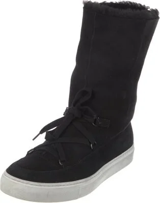 Aquatalia Suede Mid-Calf Lace-Up Boots Black Round-Toes Exposed Zip Closure at Ankles Fit: Boots by Aquatalia typically run small, consider taking a half size up.