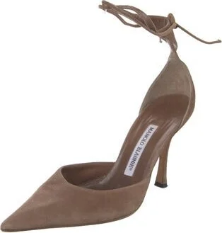 Manolo Blahnik Suede Sandals Brown Wrap-Around Straps Fit: This style typically runs narrow and a half size small.