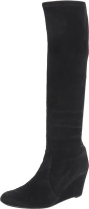 Stuart Weitzman Suede Knee-High Boots Black Square-Toes Designer Fit: This designer typically runs true to size.