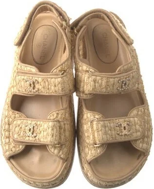 Chanel Jute Espadrilles From the Cruise 2021 Collection by Virginie Viard Neutrals Interlocking CC Logo & Faux Pearl Accents Leather Trim Leather & Beaded Accents Platform Multistrap & Velcro Closure Read more
