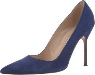 Manolo Blahnik Suede Pumps Blue Semi-Pointed Toes Fit: This style typically runs narrow and a half size small. Read more