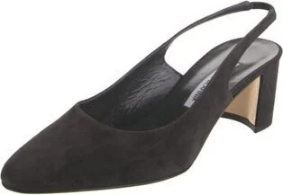 Manolo Blahnik Suede Slingback Pumps Black Semi-Pointed Toes Includes Box Fit: This style typically runs narrow and a half size small. Read more