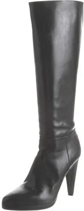 Prada Leather Knee-High Boots Black Semi-Pointed Toes Platform Concealed Zip Closure at Sides Includes Dust Bag Fit: This style typically runs a half size small. Unfortunately, due to restrictions, this item may not be eligible for shipping in all areas.