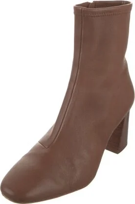 Loeffler Randall Leather Ankle Sock Boots Brown Square-Toes Concealed Zip Closure at Sides Unfortunately, due to restrictions, this item may not be eligible for shipping in all areas.
